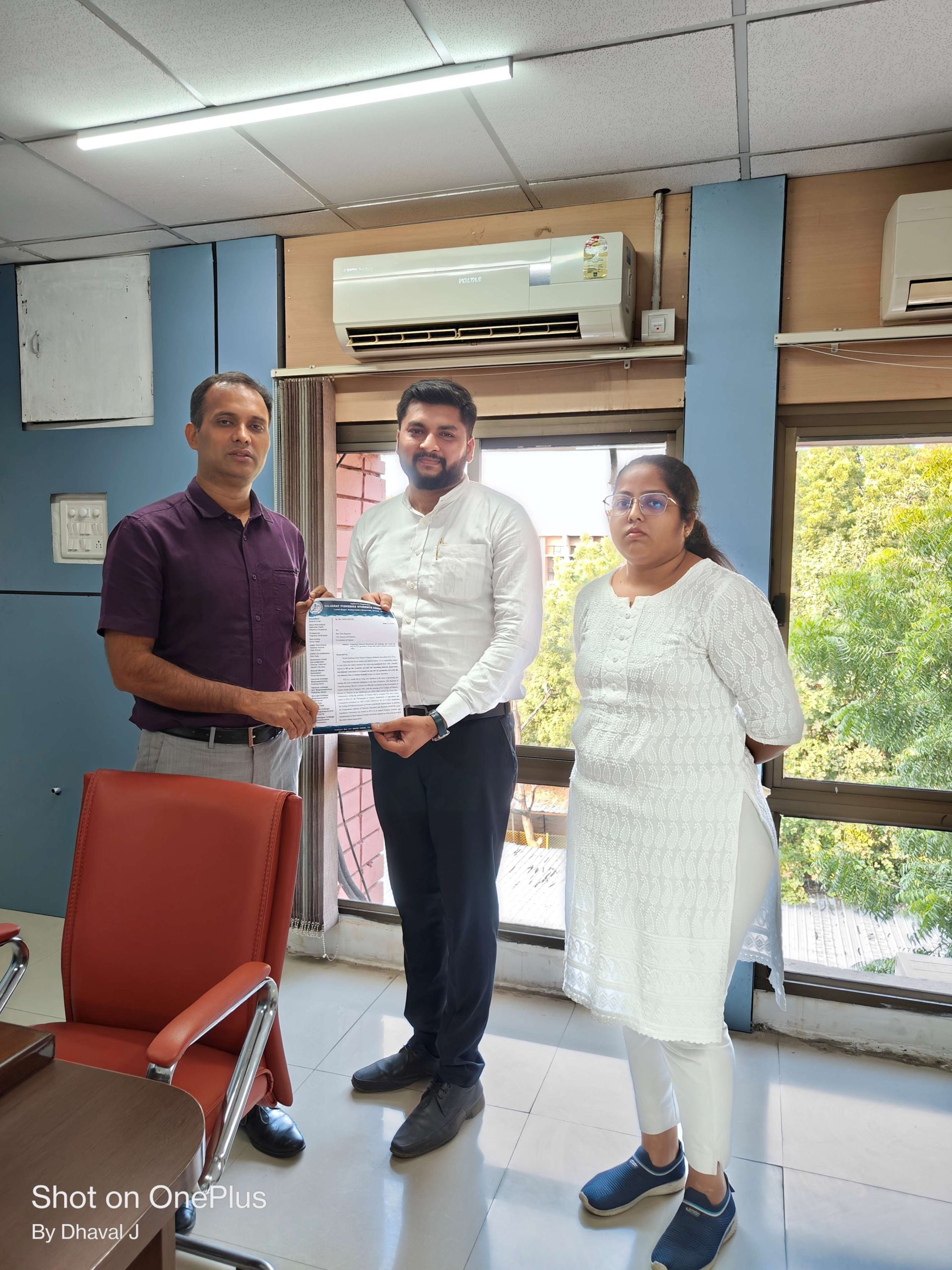 ફિશરીઝ વિદ્યાર્થીઓના પડતર પ્રશ્નો અંગે ગુજરાત ફિશરીઝ વિદ્યાર્થી એસોસિએશનના પ્રમુખ ધવલભાઈ જુંગીની આગેવાની હેઠળની કેબિનેટ ટીમ મંત્રીઓ તથા કમિશ્નરની મુલાકાત કરવામાં આવી હતી.ગુજરાત રાજયની સૌપ્રથમ એવી ફિશરીઝ કોલેજની સ્થાપના રાજ્ય સરકાર દ્વારા વેરાવળ (જી. ગીર- સોમનાથ) ખાતે વર્ષ ૧૯૯૧-૯૨માં કરવામાં આવેલ. ત્યારબાદ વિદ્યાર્થી અને માછીમાર સમાજની જરૂરિયાતને ધ્યાનમાં રાખીને અન્ય બે કોલેજ નવસારી અને હિંમતનગર ખાતે શરૂ કરવામાં આવી કે જે માછીમાર સમાજ, સંગઠનો તથા મત્સ્યોદ્યોગ સાથે ગાઢ રીતે સંકળાયેલ છે. આ કોલેજમાં સ્નાતક, અનુસ્નાતક અને પીએચ.ડી સુધી નો અભ્યાસ ક્રમ ચાલે છે.