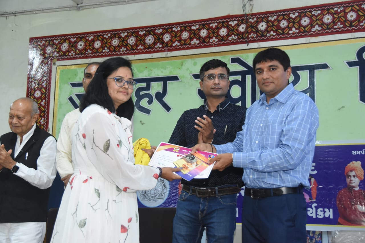 આચાર્યઓ, ગુરુજનો અને તેજસ્વી વિદ્યાર્થીઓનું પ્રમાણપત્ર, ભારત વિકાસ પરિષદનું ઉષ્માપૂર્વક અને સ્વામી વિવેકાનંદજીનું પુસ્તક અર્પણ કરી પ્રત્યેકનું સન્માન કરવામાં આવ્યું.