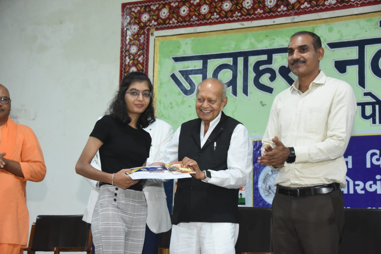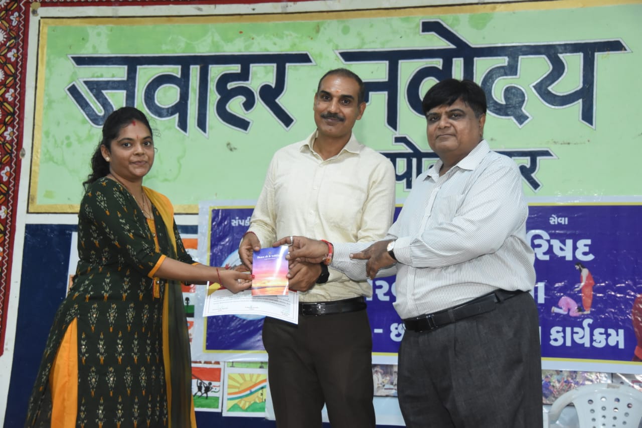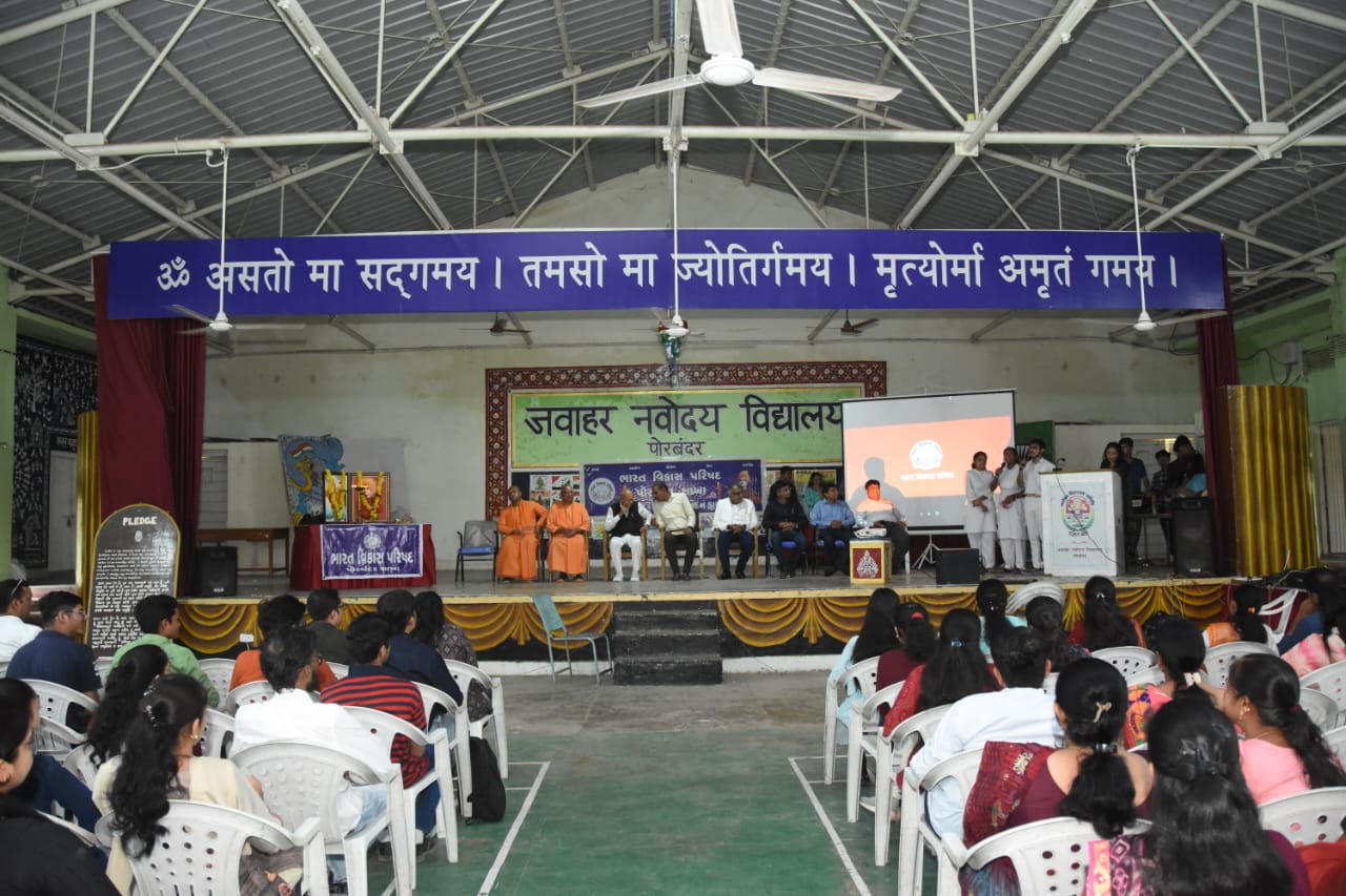 ભારત વિકાસ પરિષદની પ્રાંત દ્વારા નિયુક્ત થયેલ અને ૨૦૨૩-૨૦૨૪ ની ટીમ દ્વારા રાષ્ટ્રીય કાર્યક્રમ “ગુરુવંદન છાત્ર અભિનંદન” ના કાર્યક્રમનું શ્રી જવાહર નવોદય વિદ્યાલય પોરબંદર ખાતે ભવ્ય આયોજન કરવામાં આવેલ. જેમાં પોરબંદર જીલ્લાના ૧૨૦ જેટલી શાળા કોલેજોના આચાર્યઓ/ગુરુજનો અને તેજસ્વી અને ઓજસ્વી વિદ્યાર્થીઓનું પ્રમાણપત્ર અને સ્વામી વિવેકાનંદજીના પુસ્તકો ભેટ આપી સન્માન કરવામાં આવેલ.