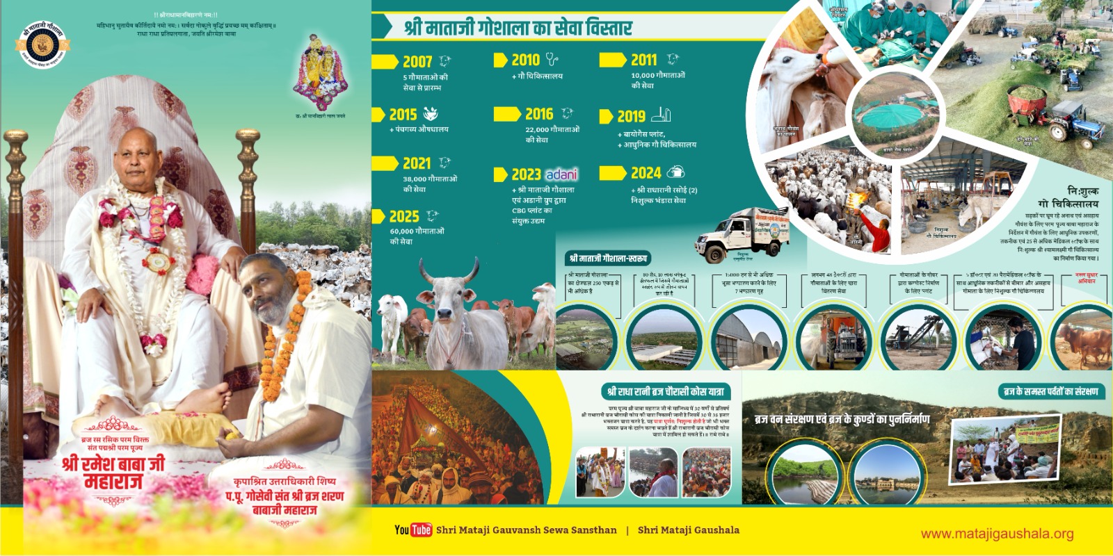6 years ago, with Shri Baba Ji Maharaj’s inspiration, Maan Mandir Trust started a cow shelter, a Goshala, with only 2 cows. Now it has over 22,000 cows who are served like a mother.