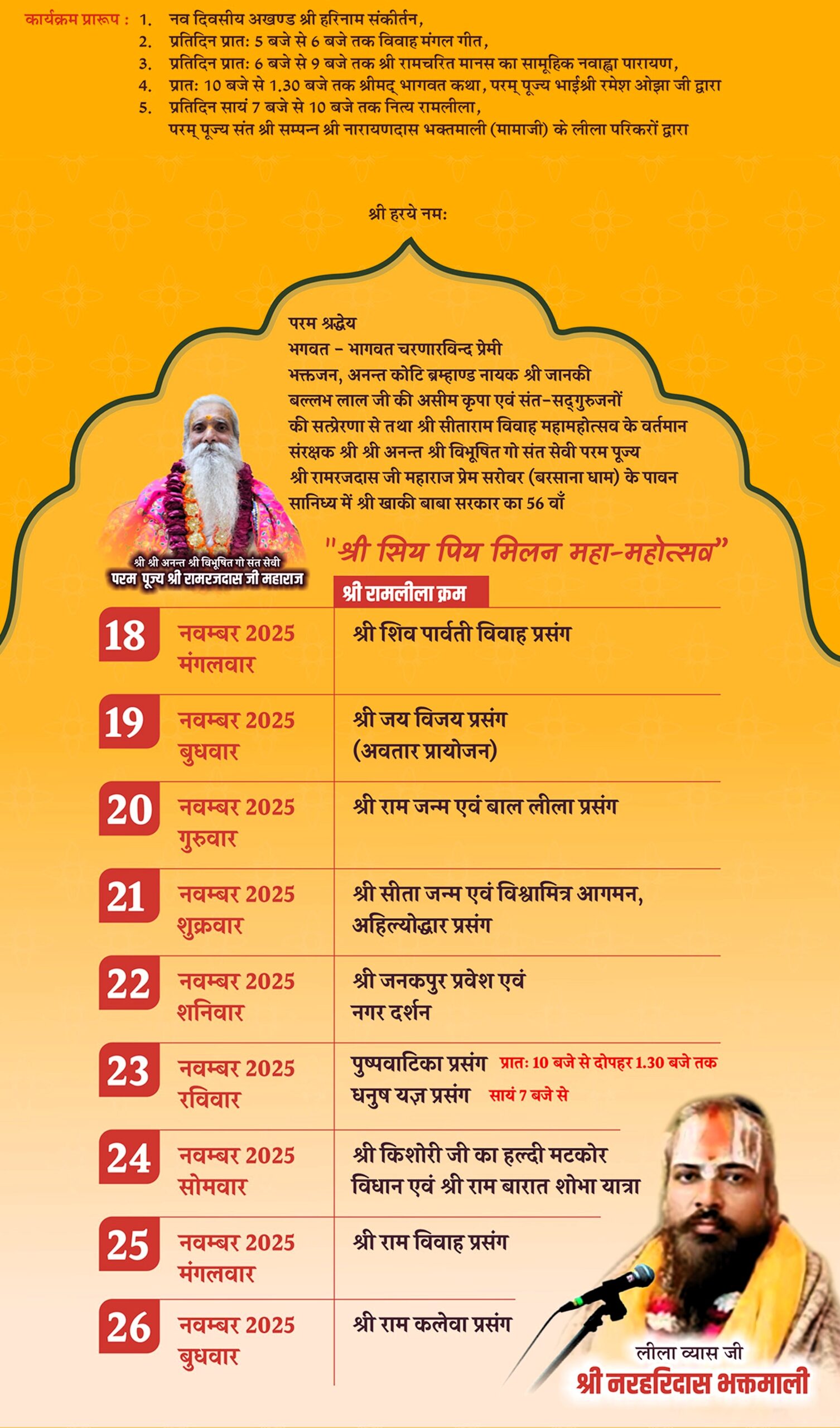 On this holy land, from November 18 to 26, the Shrimad Bhagwat Katha and Shri Sitaram Vivah Mahotsav will also be held here in the name of the founder and national saint Rameshbhai Ojha of Sandeepani Shri Harimandir in Porbandar, in which various events will be celebrated every day. There is great enthusiasm among the devotees regarding this Katha.