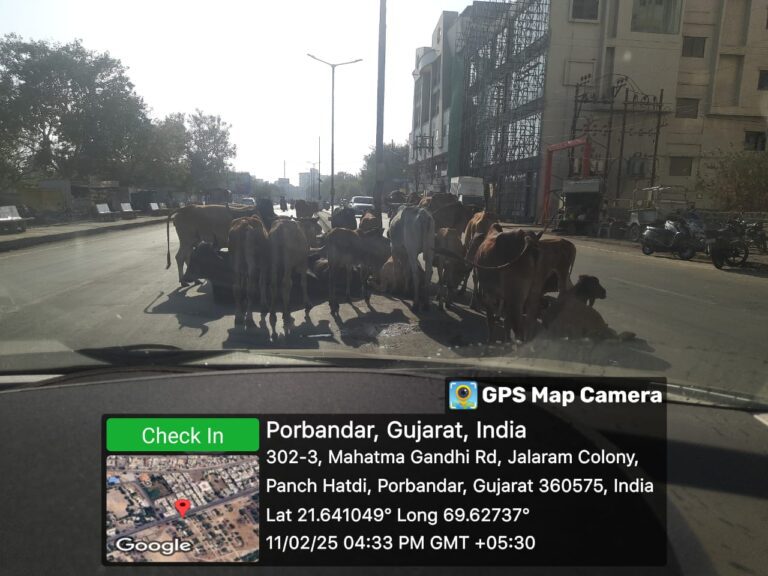પોરબંદર માં રખડતા પશુઓ નો ત્રાસ દુર કરવા સક્રિય નાગરિક સંગઠન દ્વારા મ્યુની.કમિશ્નર ને રજૂઆત કરાઈ છે.